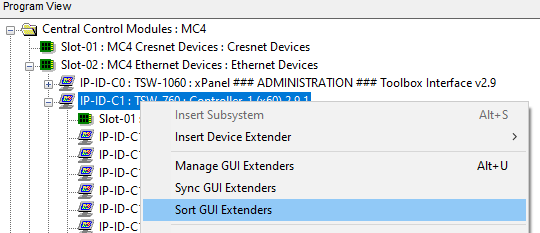 *Note: The actual IP-ID of the item may change based on sorting of the object, the Smart Graphics ID (SG-ID) will always be the same and is what is referenced by the VT-Pro Project. To ensure that the list is show as ordered by SG-ID simply Right click on the device header -. Sort